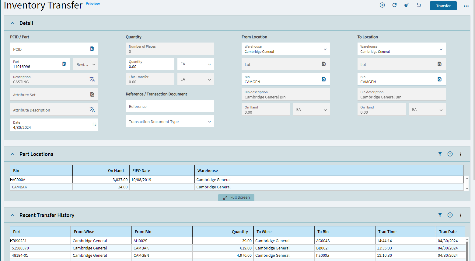 In the Inventory Transfer screen I’m having a issue with the Where clause when refreshing a panel grid after submitting a Transfer.