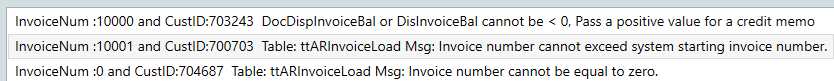 But… the point of AR Open Load is that you’re loading already open, existing, invoices into Epicor. So the invoice numbers will already exist (generated from your old system), and once you DO go Live and Epicor generates its first invoice, it will start at 10000 or whatever you set that value to in Company Config.