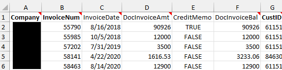 In the setup the gave the errors below the DMT file had the first row as invoicenum 10000, the next row as 10001, and then the rest at 0 to see if either of these options would work.