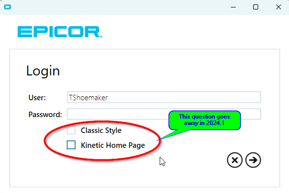If you want to see what is happening in 2024.1 RIGHT NOW in your version, you can do the following test. Log in via the smart client, and when you do, check the bottom box on the login screen that says “Kinetic Home Page”. As of Kinetic 2024.1, The Kinetic Home Page is the only home page available. BUT you can still run smart client, and smart client apps, even from the kinetic home page.