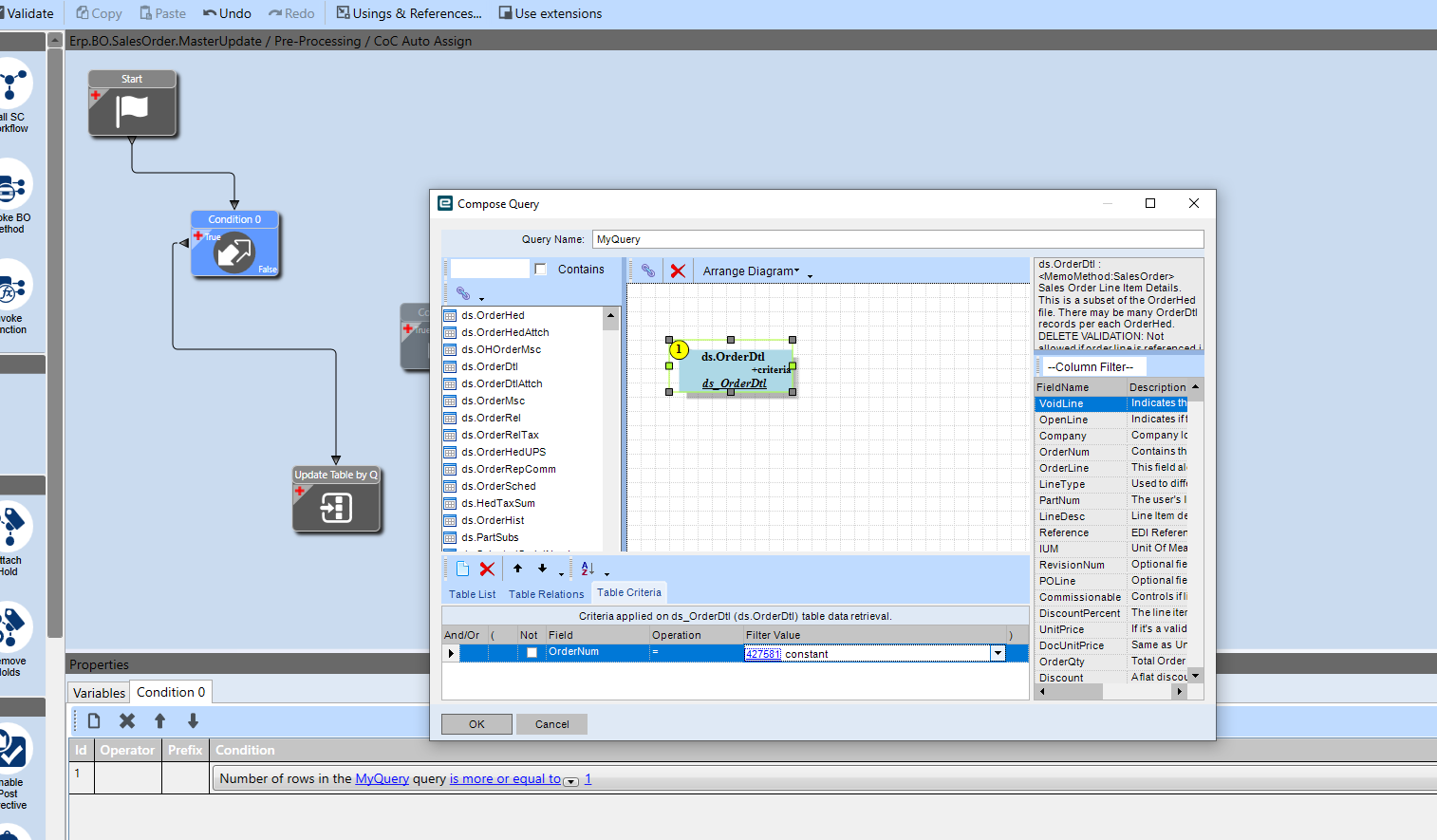 if I use this query in BPM, will work on all for lines for this order?