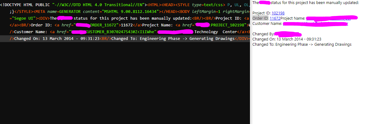 This is the sample of the data and the rendered version. As you can see the data (on the left) is in HTML: