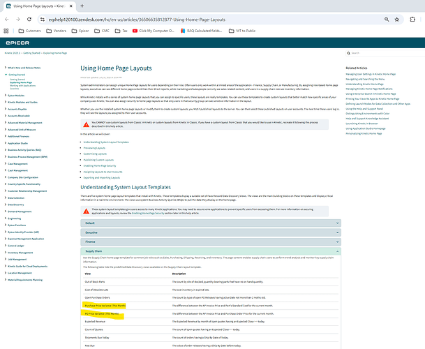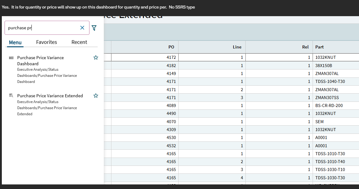 This is a question to the entire Kinetic community. We’re working with a Manufacturing Consulting company, and they told us that there should be a stock Epicor PPV report as well as a dashboard.