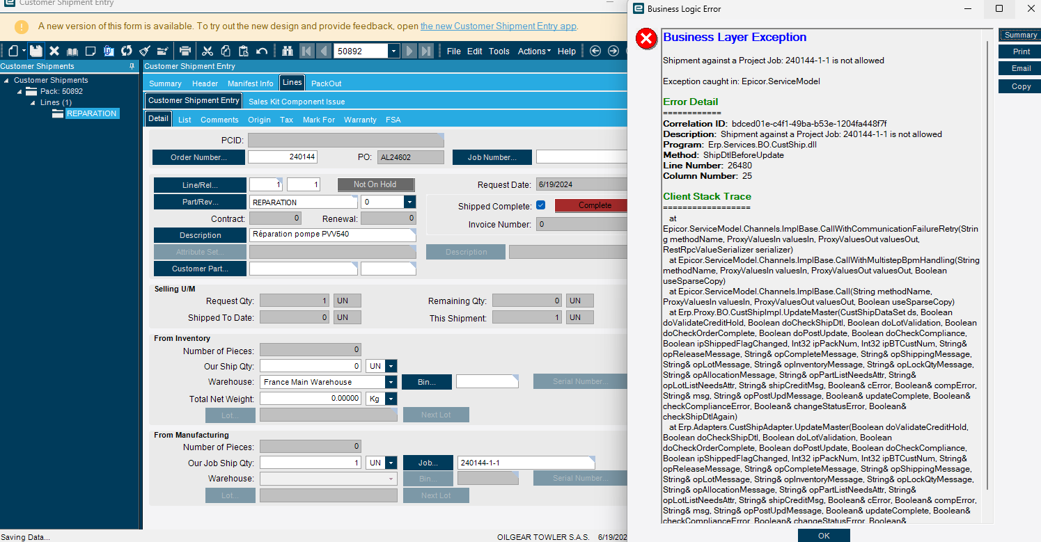 Hello! We are having issues shipping a project job. It is a job created from a sales order, that was turned into a project job. I assume that this is where we are having issues, because we are trying to ship it out of customer shipment entry, but because it is a project job it won’t let us. How do we remedy this?