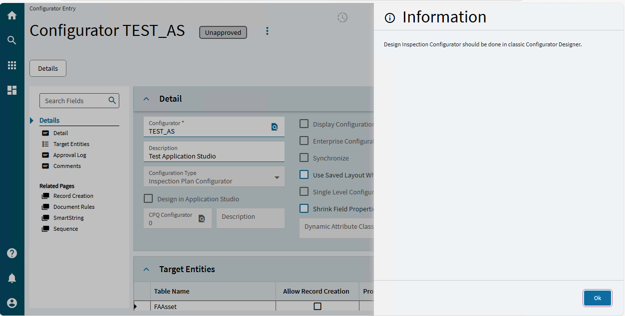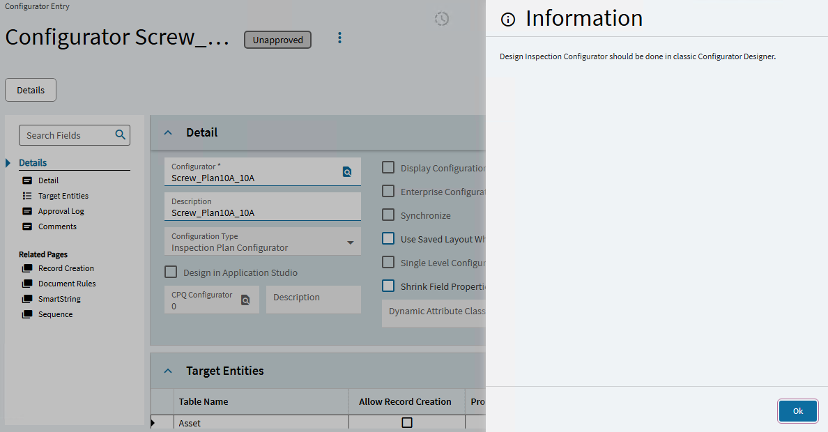 I’m testing in the Demo Database and always get the “Design Inspection Configurator should be done in classic Configurator Designer” for an existing inspection plan