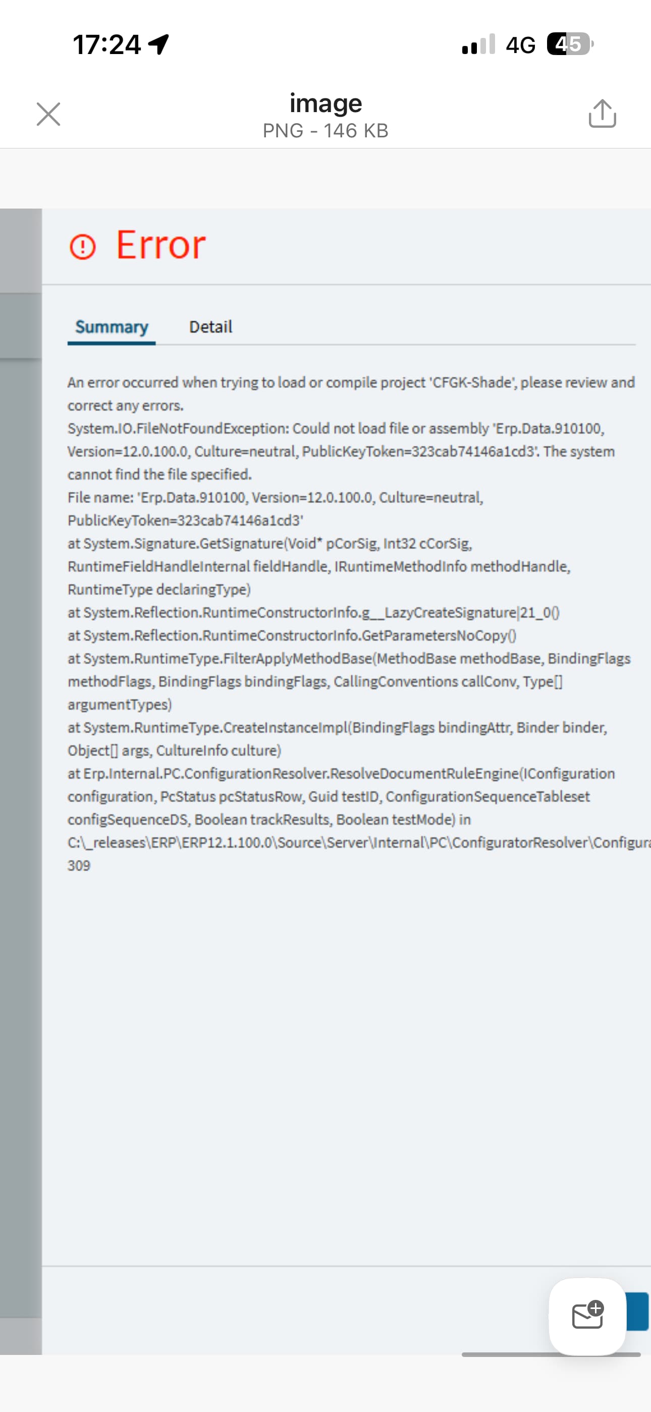 After the update, it is looking for Erp.Data.121100. The cloud team need to apply a fix so it points to Erp.Data.121100.