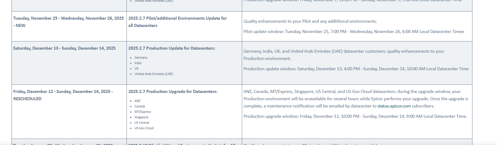 I am no longer seeing maintenance scheduled for this weekend 11/14 to upgrade Prod to Kinetic 25.2.5. Has this been delayed for the newly posted upgrade to 25.2.7 scheduled for 12/12?