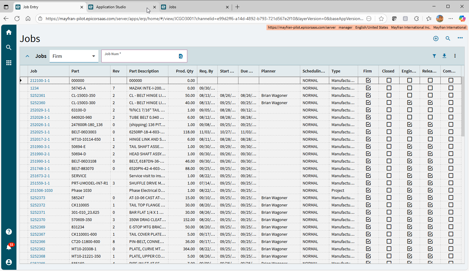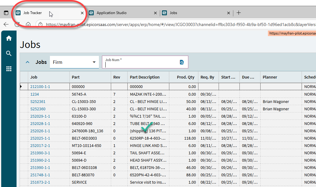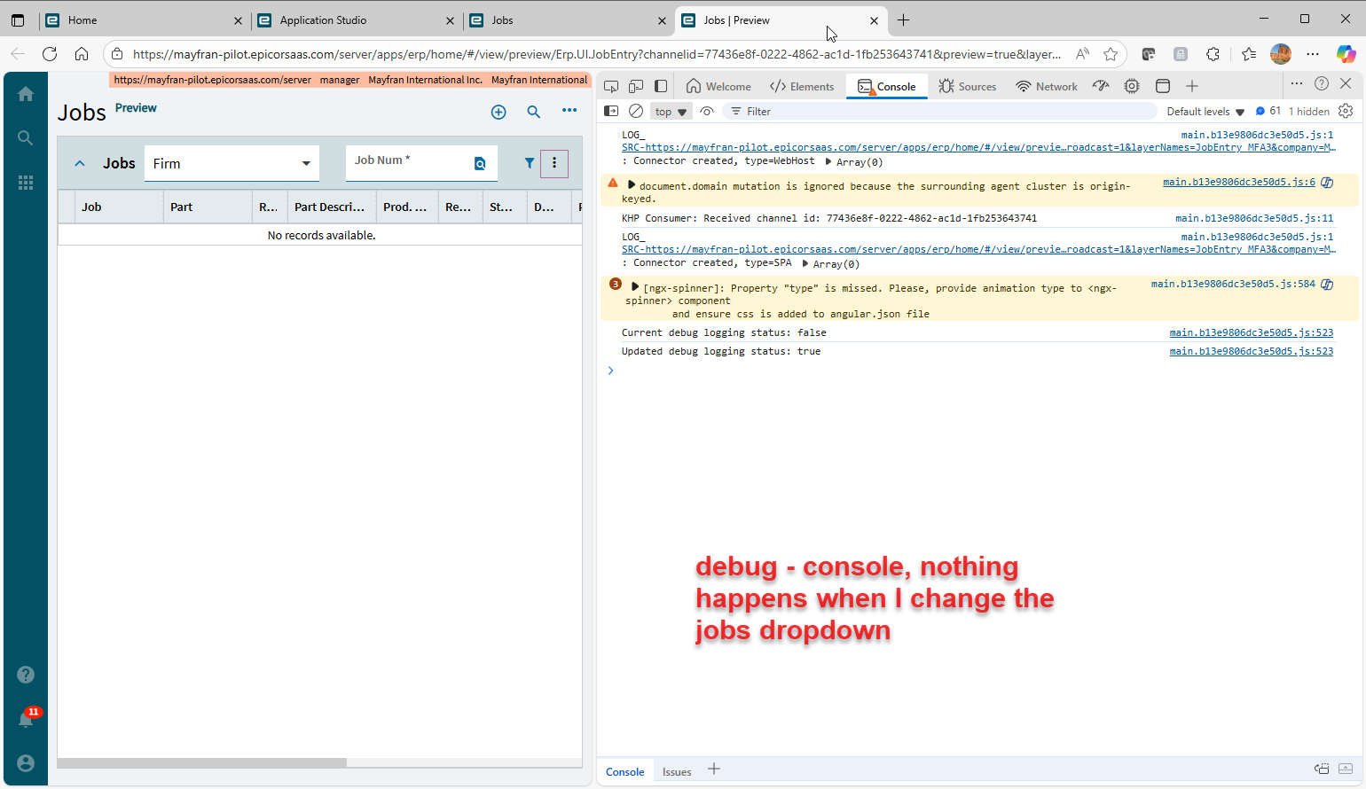 I opened up the debug window (F12) but I’m not sure if I know what to look for. If I switch to any of the job dropdown selections (All/Firm/Unfirm) nothing appears. But again, they work on the screen from the menu.