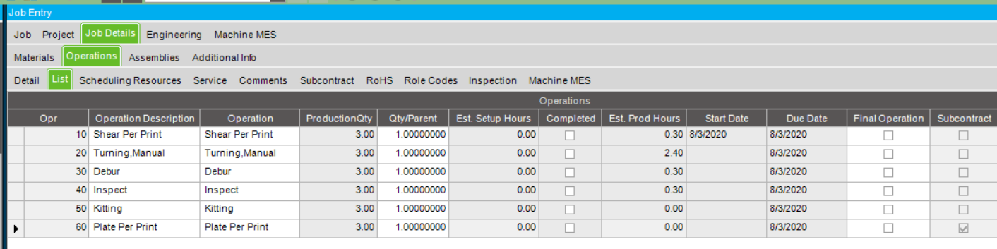Has anyone seen Job Operation Start Dates null when adding via either Right Click > Add Operation or Engineering > Methods > Job > and dragging over applicable Op? We are seeing scenarios where Start Date is null but Due Date is populated. We have tried to recreate both scenarios in our Pilot environment and we get dates populated in both Start and Due date so have not been able to figure out what is causing this.