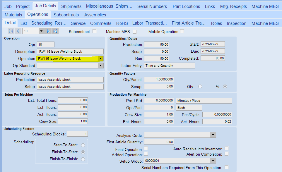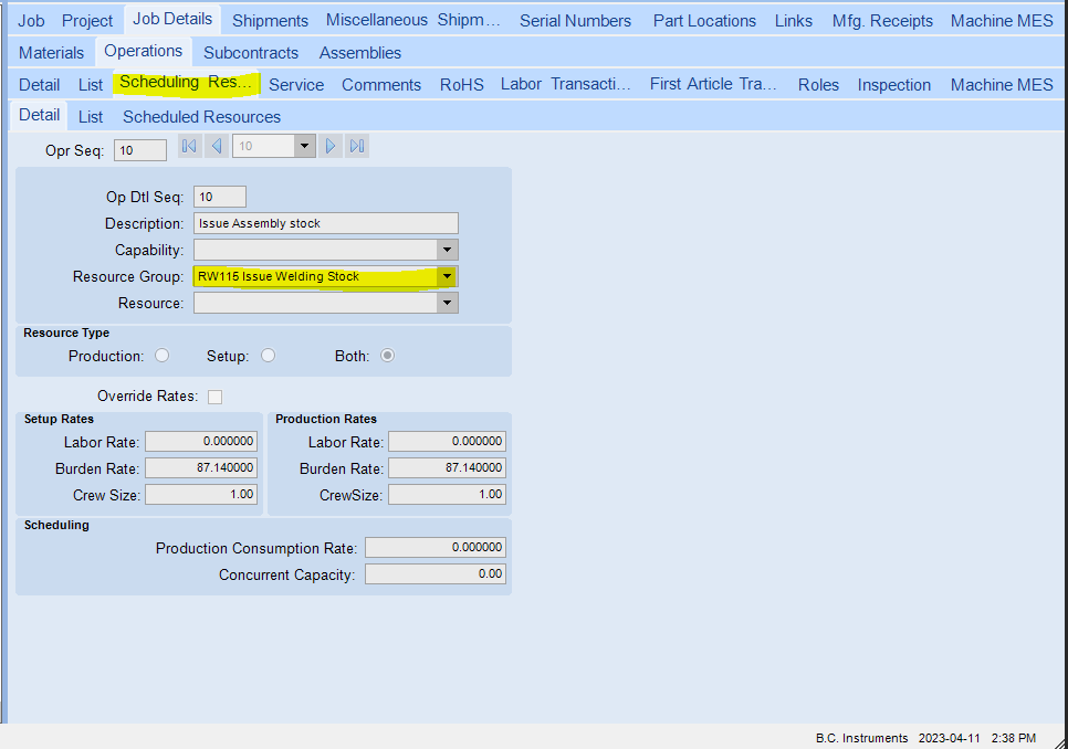 the operation on the details tab is aligned properly with the Resource Group on the Scheduling resource tab.