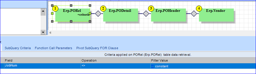 You want to show rows where: PORel_JobNum = '?{JobHead.JobNum}'