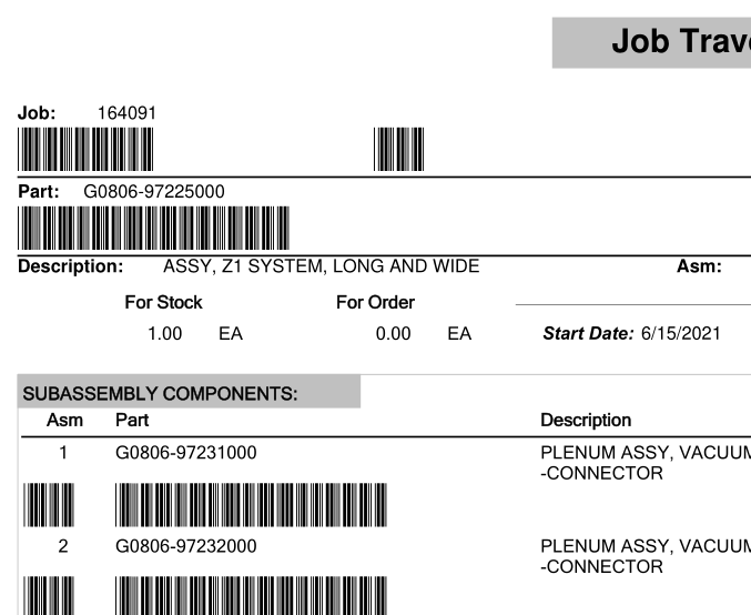 I would assume that this is from the Traveler_SubComponents report that is a subreport on the Traveler.rdl. However, I have starred at this RDL in report builder for a long time and I do not see this subreport anywhere. I do see the Traveler_RawMaterialComponents subreport and I would presume that the Traveler_SubComponents would be before Traveler_RawMaterialComponents because it displays before Raw Materials but I just don’t see it.