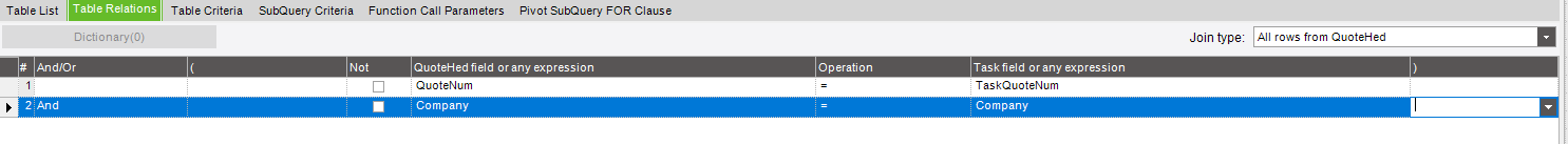I have the QuoteHed.QuoteNum = Task.TaskQuoteNum fields set correctly I think but I am just wondering if the join between Erp.QuoteHed.QuoteNum and Erp.QuoteDtl.QuoteNum is causing the issue? As I am also trying to match the QuoteNum from QuoteHed to the TaskQuoteNum from Task.