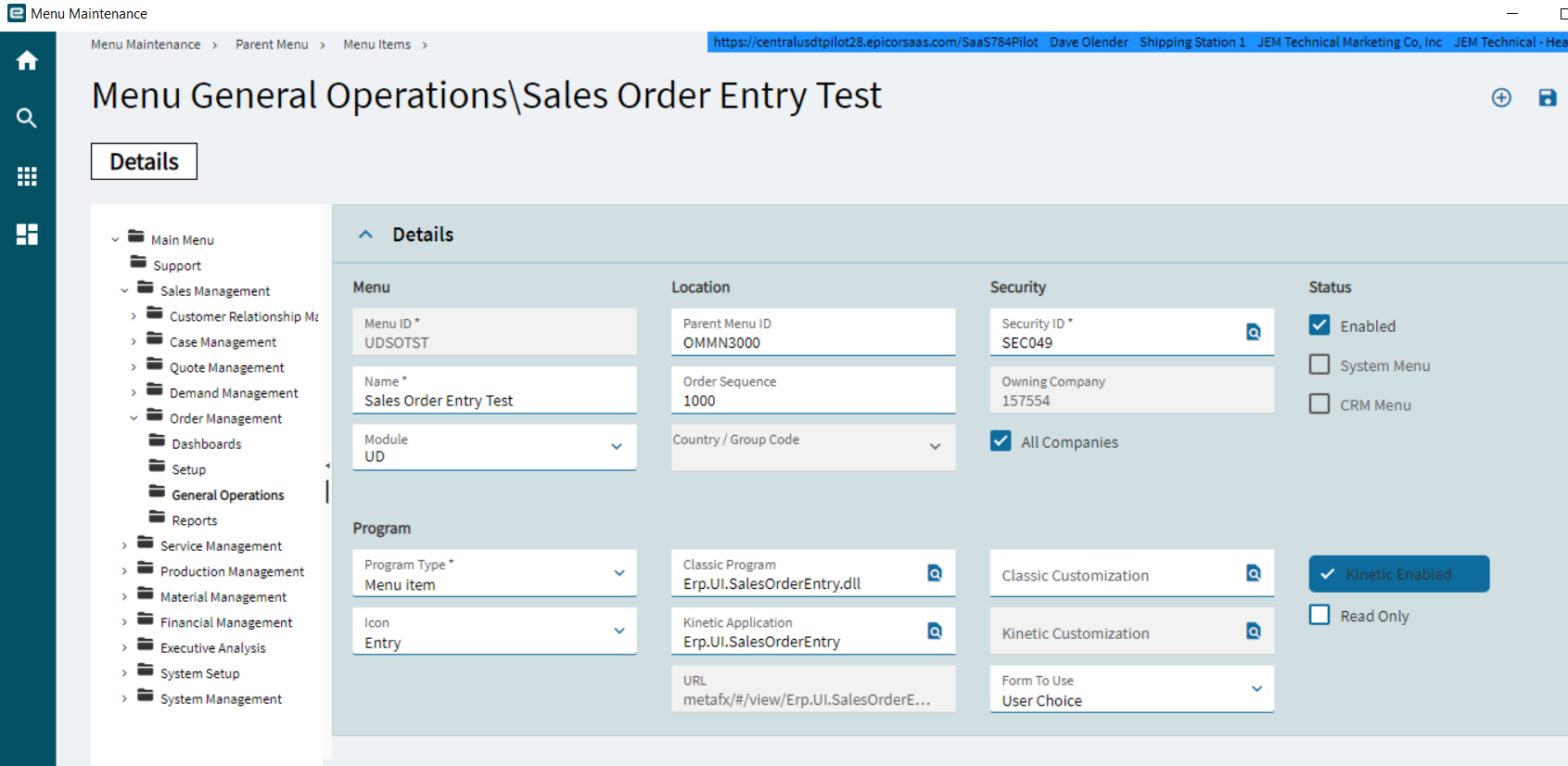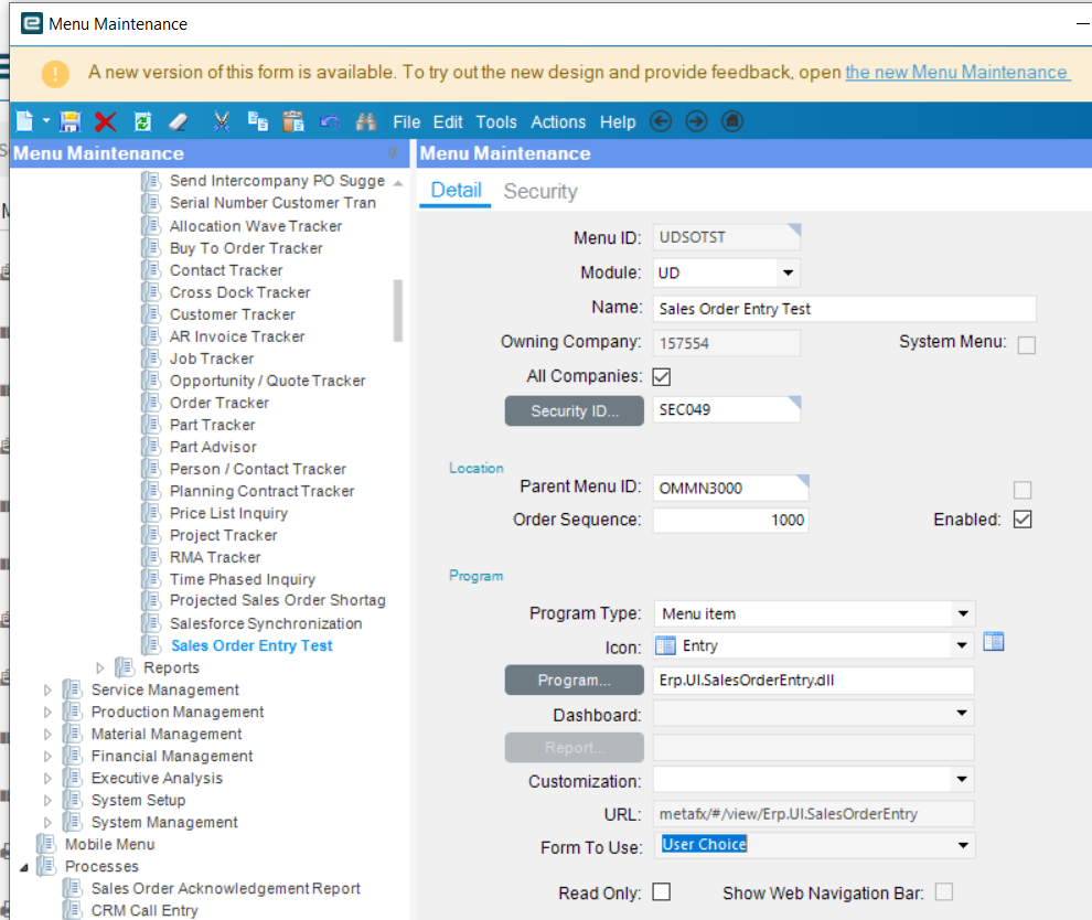 I did go into the Kinetic Menu Maintenance and set the Form to Use as “UserChoice” and My user is set as “UserChoice”. However when i open our Sales order entry - i only see our classic form.