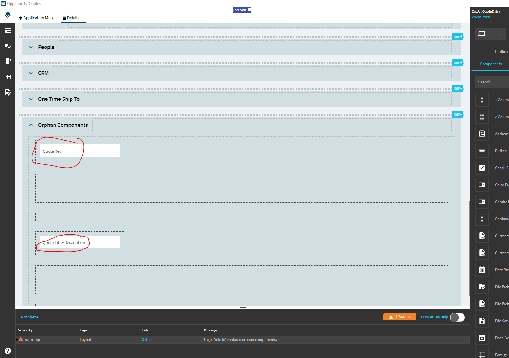 What’s odd, however, is this “warning” and “orphaned components” are only visible when I first open App Studio and am looking at the “base layer”.
