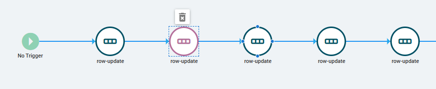 For whatever reason, even though it lets you set multiple columns within a single row-update widget, it won’t work. So you have to make a new row-update widget for each column to update. It ends up looking like this: