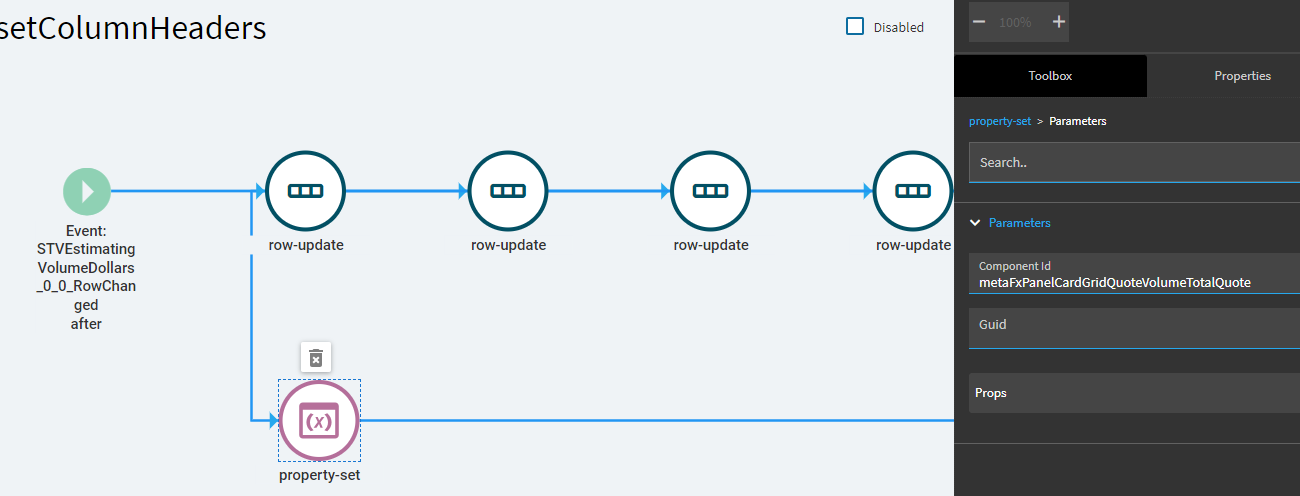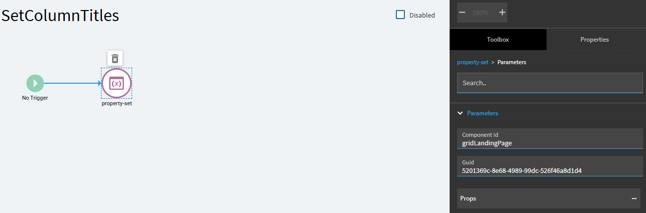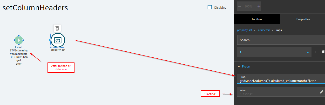 Within the property-set widget, I was able to do 12 properties within the one widget so I was able to set each column’s name like below: