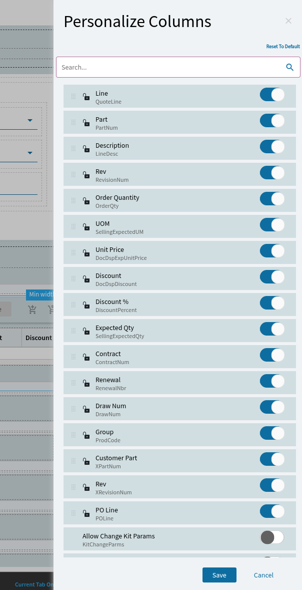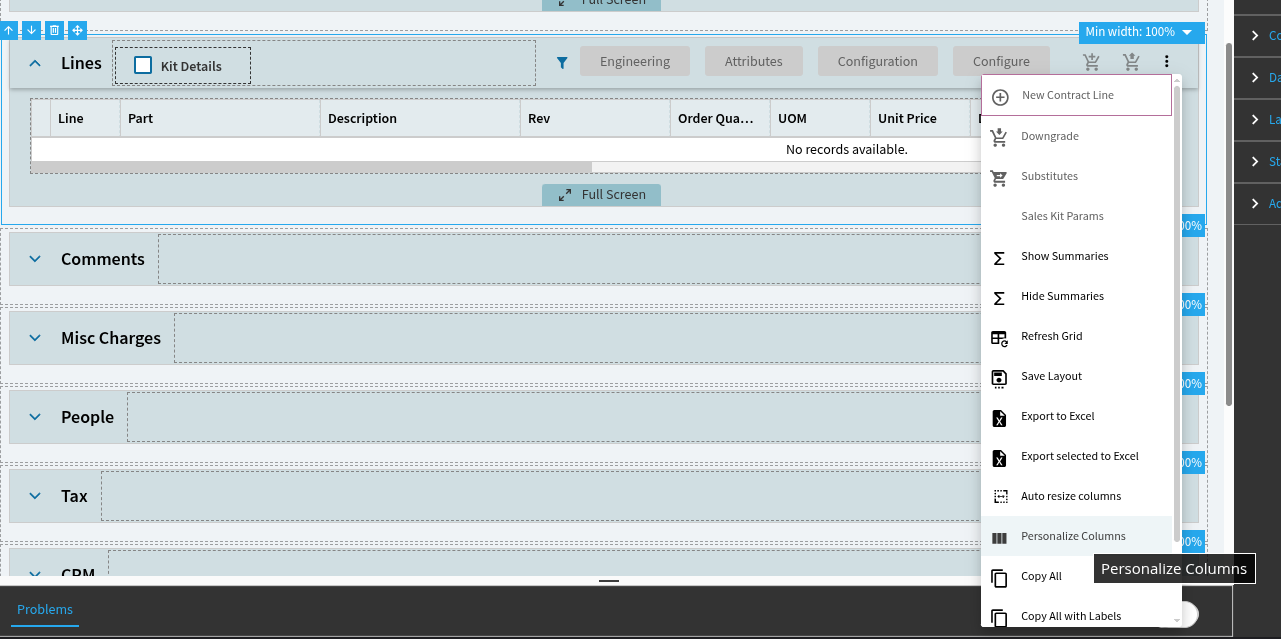 I’m trying to reorganize the column order in the Line Tab of Quote Entry. Following the guidance I found here, I went into App Studio and used the personalization option to rearrange the columns. However, the changes don’t persist — even after saving, committing, and publishing.