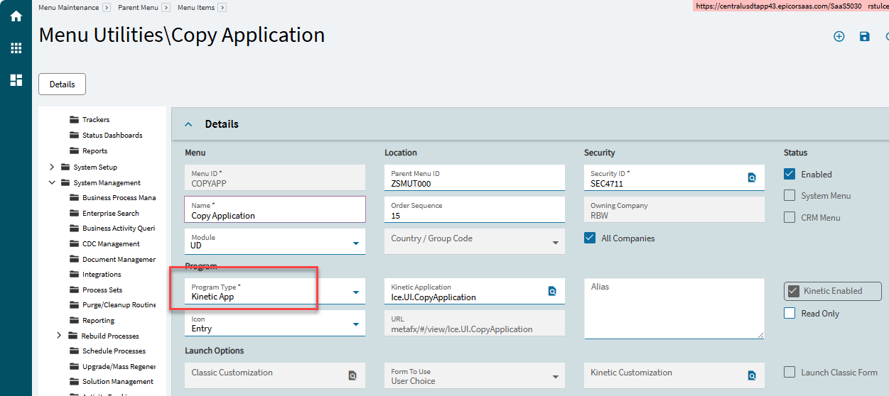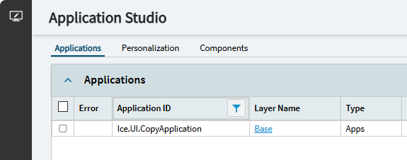 Open Application Studio and search for application ID Ice.UI.CopyApplication in the grid. You can try it by clicking on “Base” to open the app in the designer then running it via Preview (screen shot two). Otherwise go into Menu Maintenance and add it to your main menu somewhere, we put it under “System Management” tree.