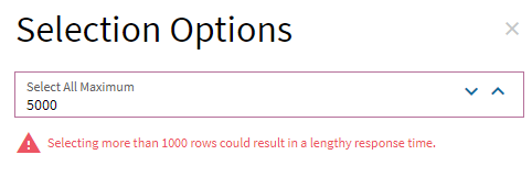 Change how many records automatically populate grids as you scroll down them. When you access a grid’s Selection Options, change the Select All Maximum field to increase or decrease the number of records you want to load into grids. Review the help article Personalized Searches for more information
