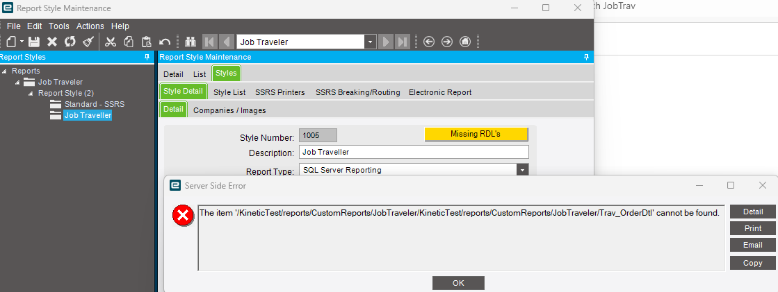 I am trying to download the report from report styles and it error’s as the subreport rdl’s don’t exist in the Kinetic database (it won’t download).