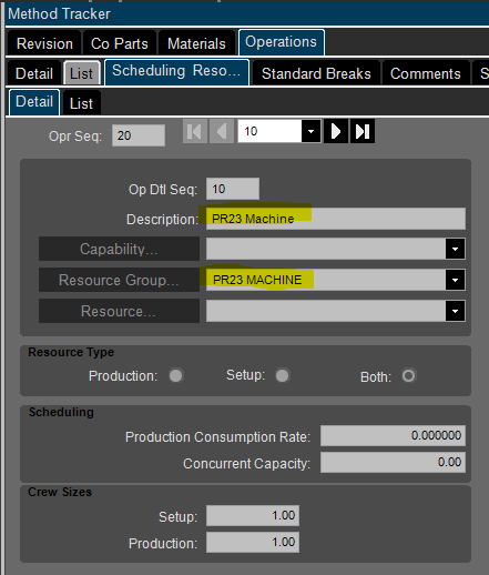 I have tried other fields through DMT for the Bill Of Operations table including PrimaryResourceGrpID, ECOOpDt#ResourceGrpID, ECOOpDtl#ResourceID but none seem to work. I can’t use the mass replace group option either as I only want to do this for a subset of parts.