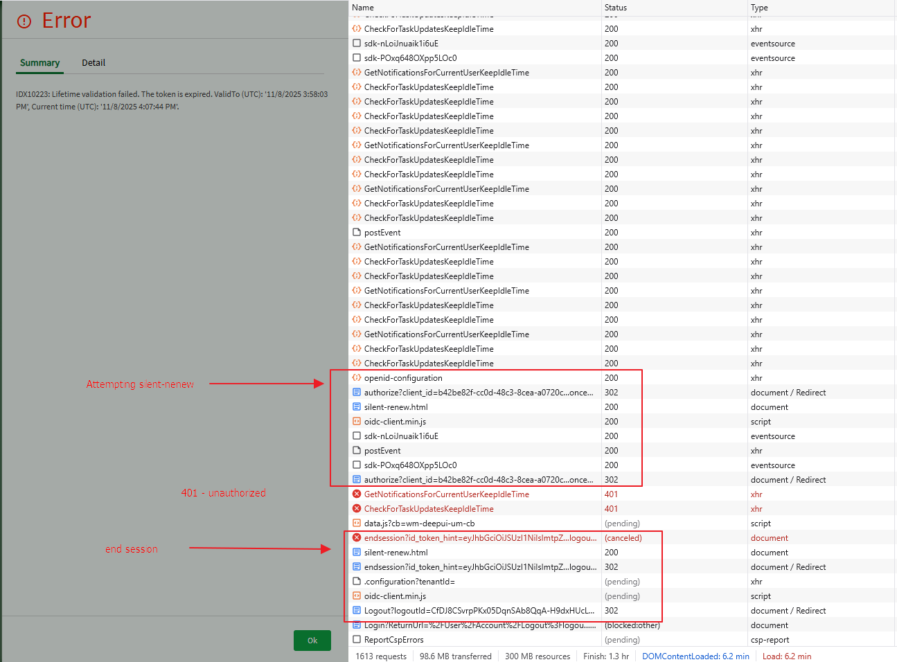 Today it’s gone along for a while then fails. Even continues to fail while active. I havn’t found a pattern but suspect it may be more problematic when active in multiple tabs.