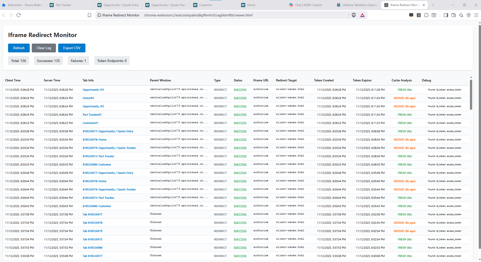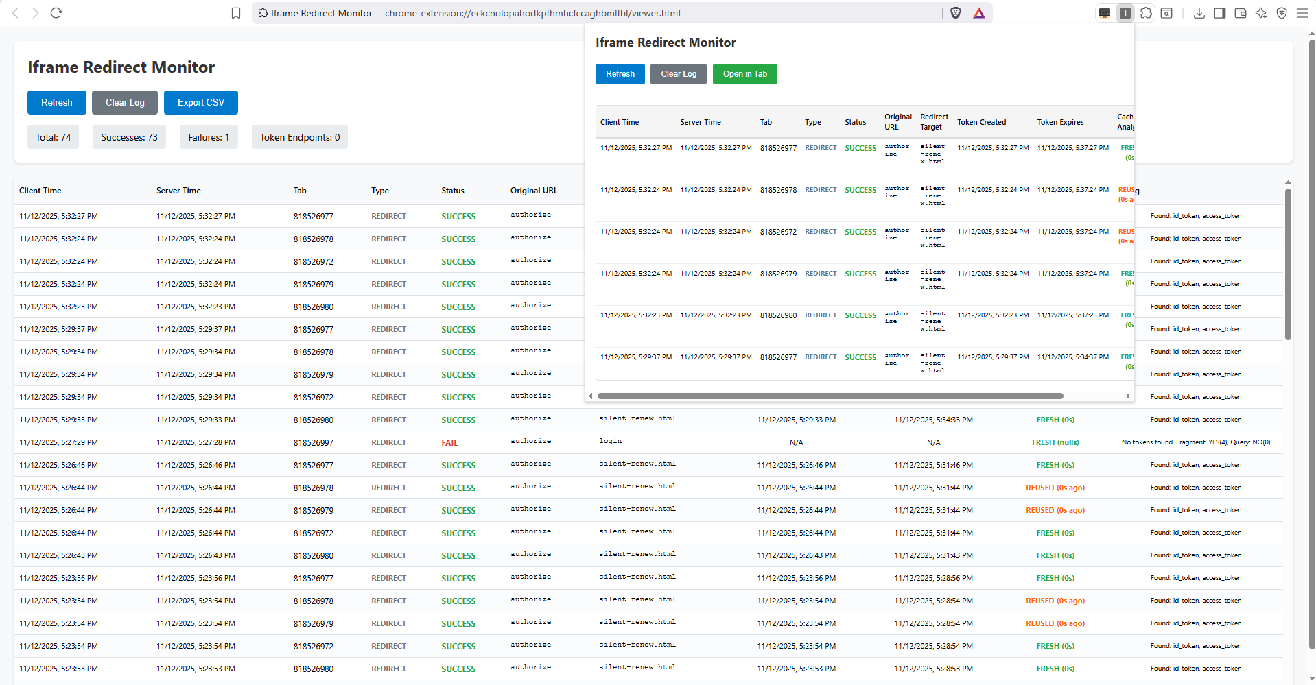 Claude n I made an IFrame Redirect Monitor browser extension which compiles all silent renewals and analyzes tokens and timestamps for all tabs. Works good. May work for the AAD /token renewal endpoint as well but havn’t proven that.