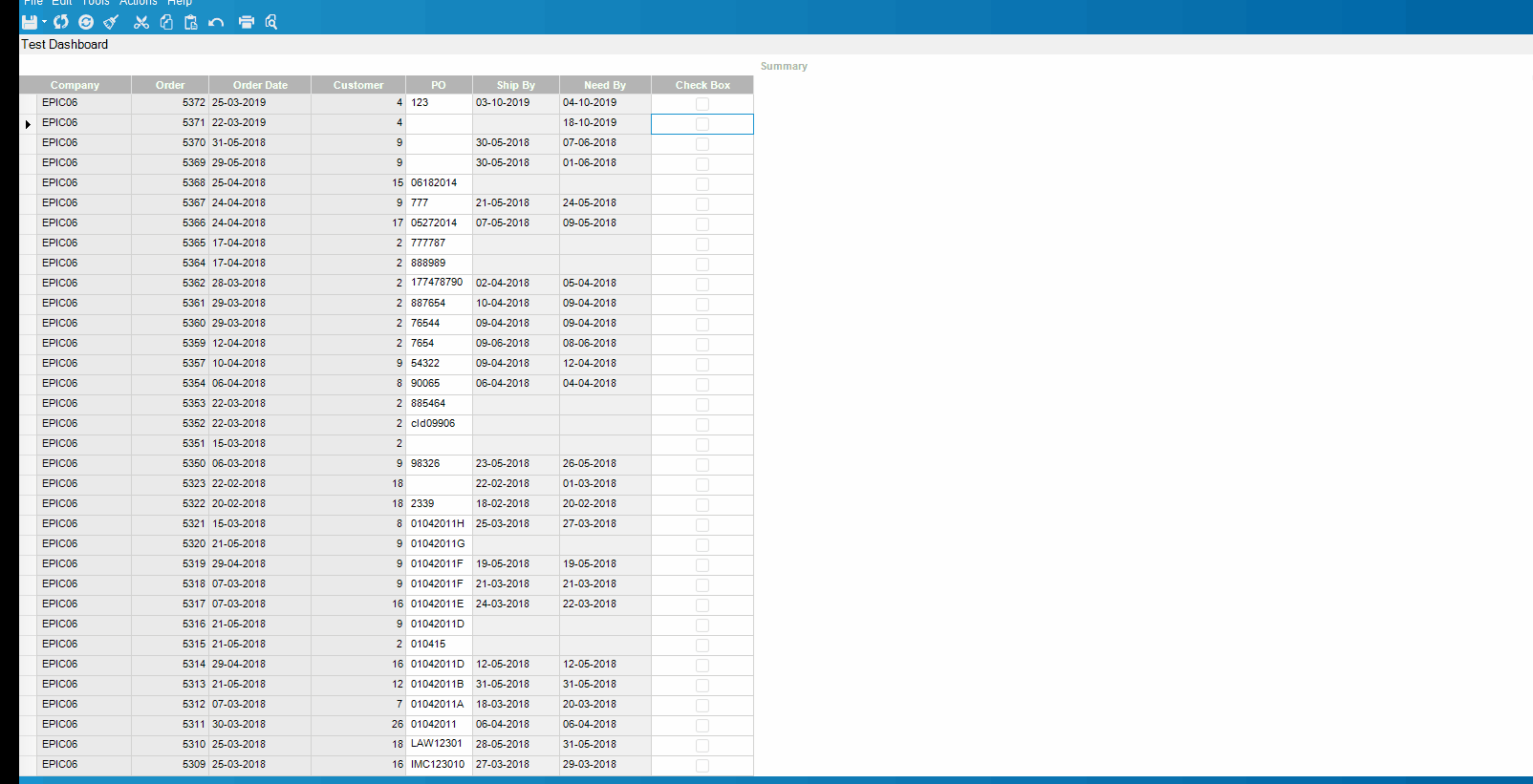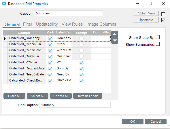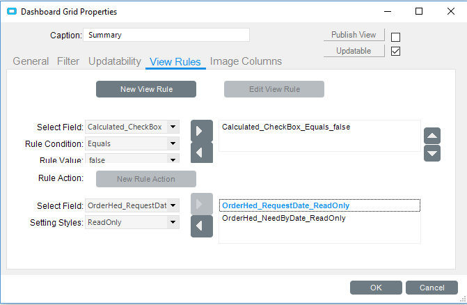 I have a dashboard with a BAQ. In the BAQ I have a calculated checkbox field called ‘Manual’ that = false. I also have two epicor fields: OrderRel.OurReqQty and OrderRel.ReqDate.