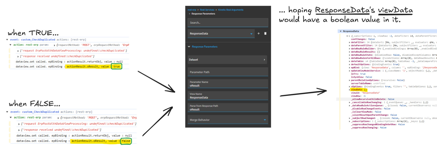 That’s why the image on the left is showing actionResult.oResult = True or False.