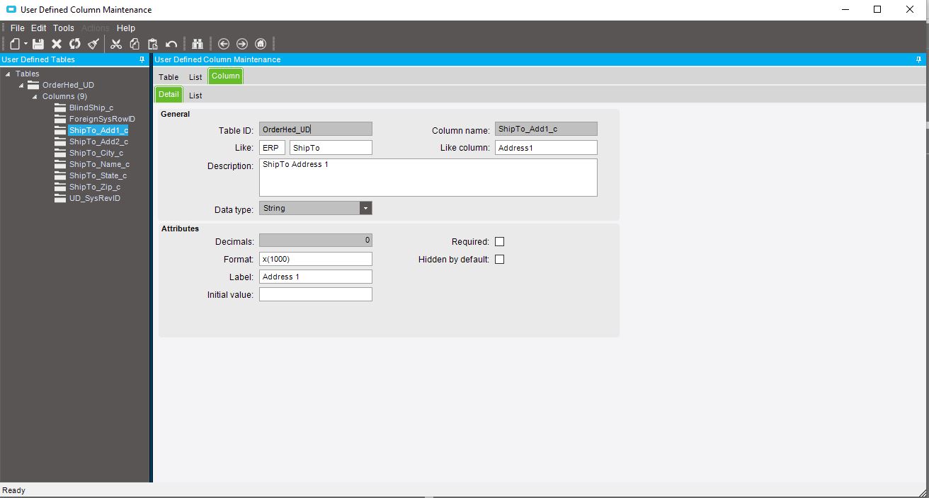 I am trying to Map ShipTo Address–>Zip code into OrderHed table as an Custom field. I have everything entered, but I am not sure how to get the mapping to show where to look for the data. When I go into UD Column Map and click on target, nothing populates. What am I missing?