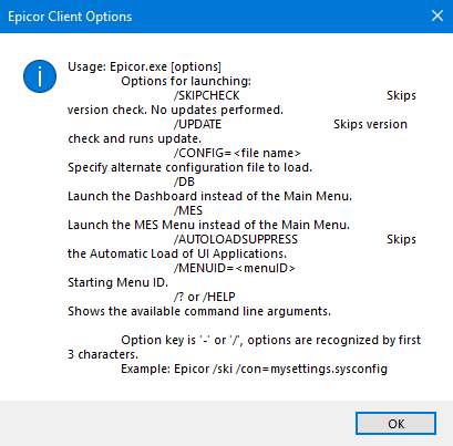 I think it’s a command line argument for epicor.exe like /memtest or /memorytest