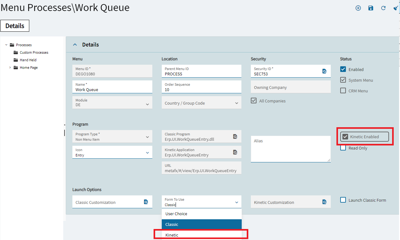You may also need to go into process in menu maintenance and change pages to kinetic. I haven’t switched MES over yet, so I’m sure I’ve missed a thing or two. But this should get you started.
