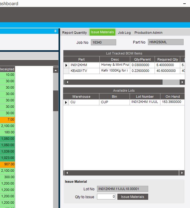 I then expanded the solution to allow for Issue of Materials - I’ve mirrored what the Kanban Receipts screen does for Lot tracked materials: