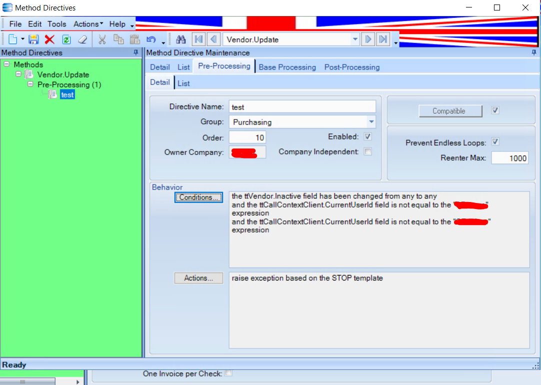 I have the below basic bpm, which basically allows 1 user to manipulate the vendor.inactive field only.