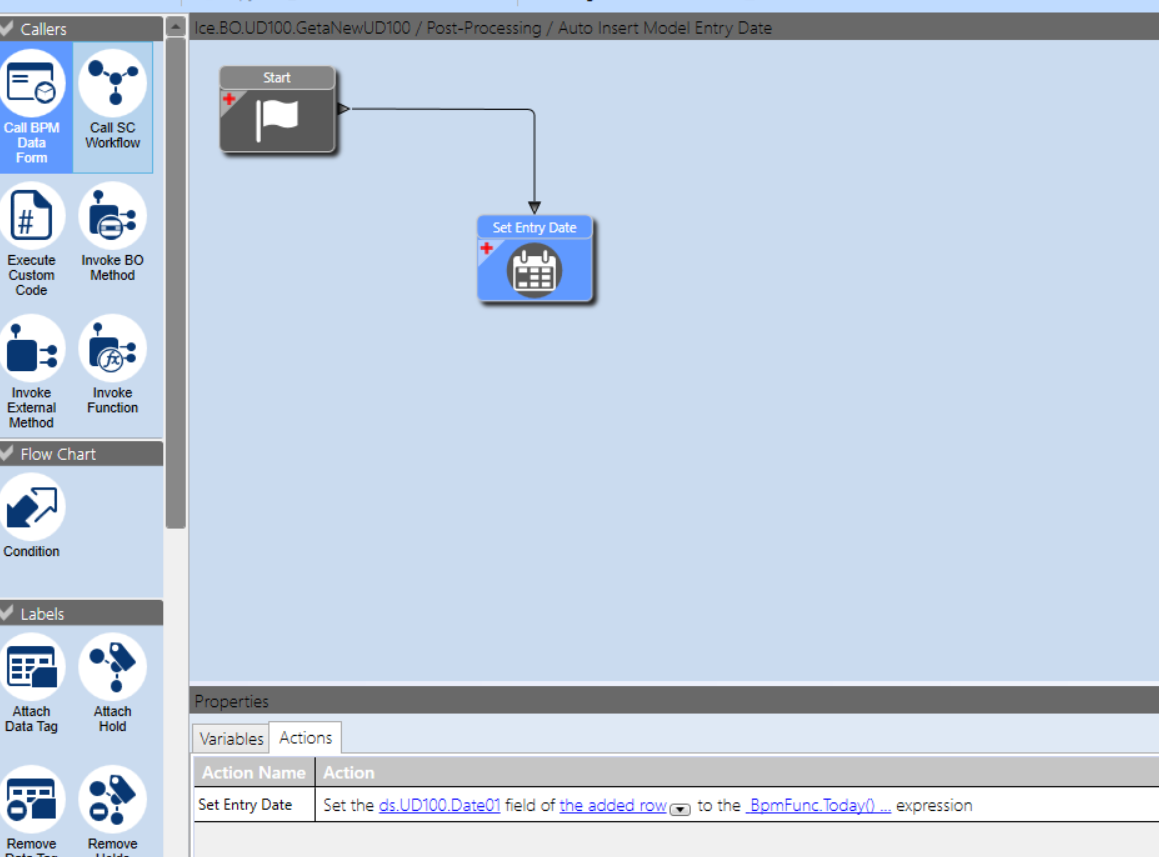 When I need logic to run no matter which methods get called, I use a Data Directive on the table. In this case I would create an In-Transaction data directive on OrderRel that checks if EntryDate_c is null (blank) and sets it to today’s date if it is. That way any OrderRel record that’s being saved will have the date filled in no matter where it comes from.