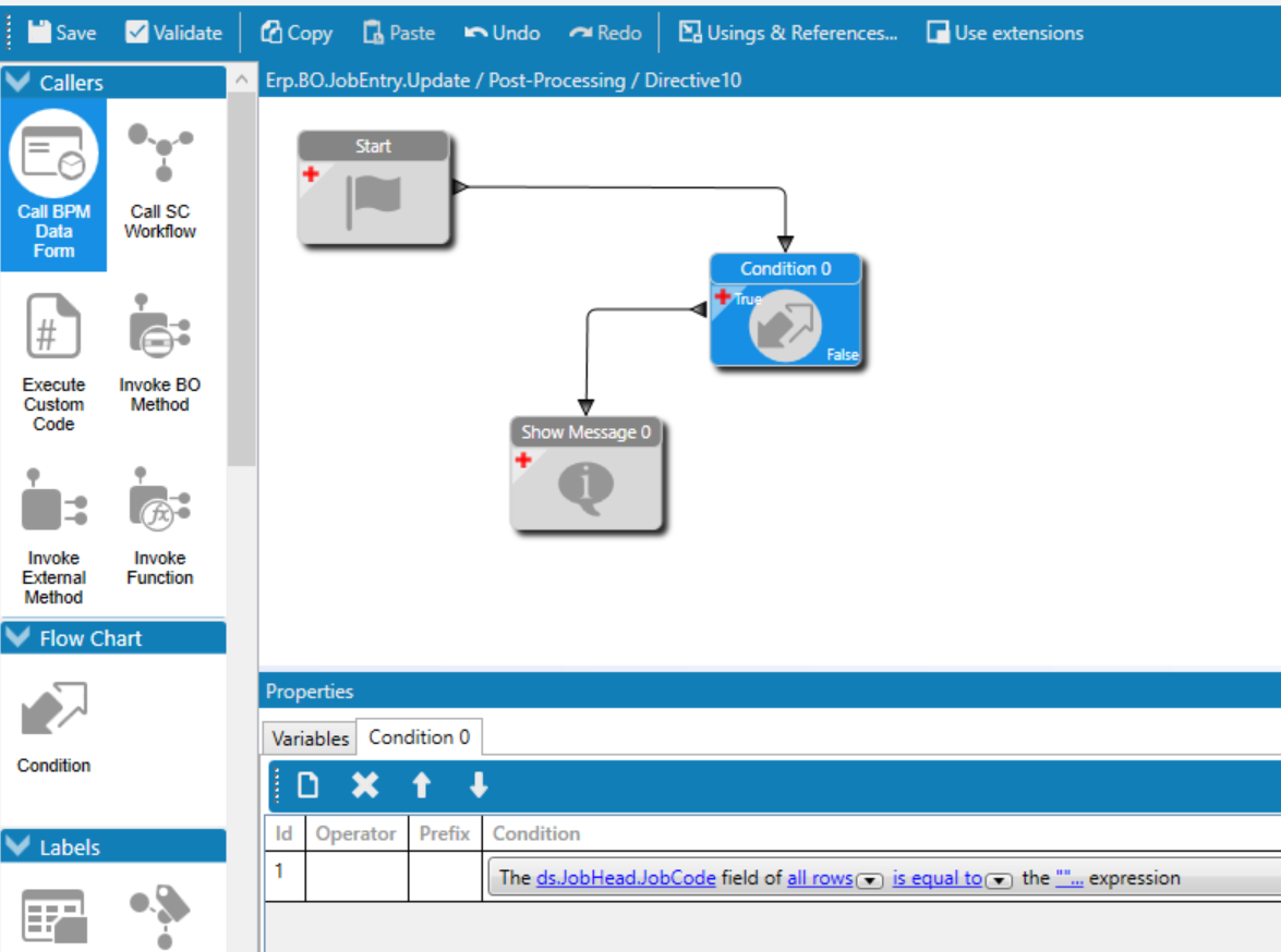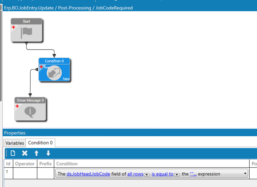 I have a simply Method Directive on JobEntry.Update that works as expected in Classic but errors in Kinetic with Row has been modified by another user and couldn’t be updated. User can click Ok on the error and proceed. We have Job Code set as a required field and then this method directive displays an message to the user. I have tried it as a data directive and also tried variations in the condition of all rows, changed rows, updated rows, etc.