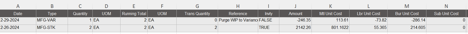 At the moment, all of the cost is going to MFG-VAR and is not distributed between the WIP accounts. Could you please advise what I can do so the cost is allocated to the appropriate WIP account?