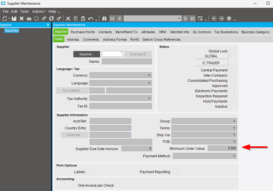 We have a number of Suppliers who have a minimum order value (currency). Is there a way to accommodate this in Epicor?