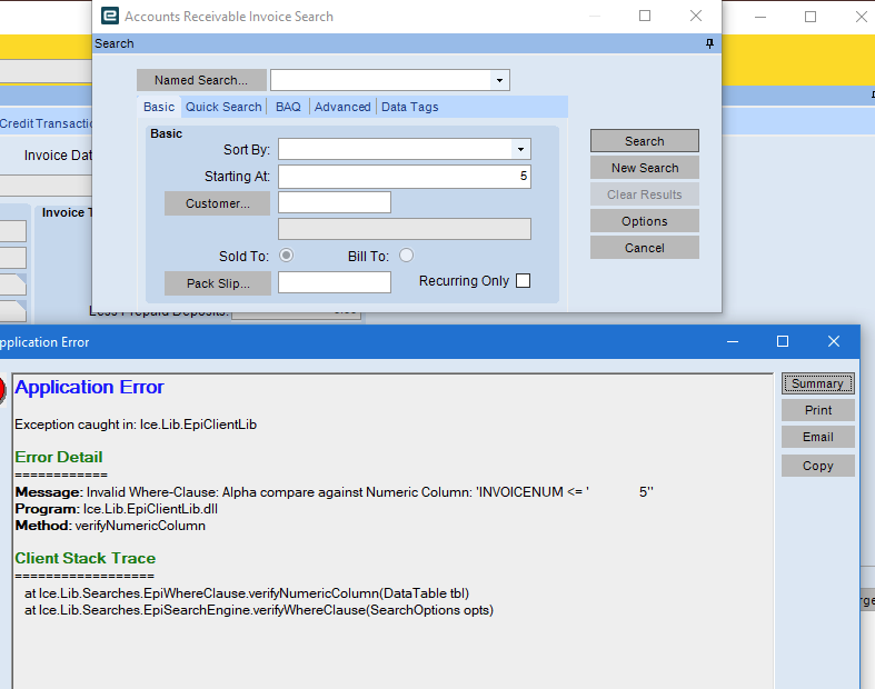 Now, if you don’t pick something, it’s trying to pass in a string with leading spaces. If you pick invoice number, it works fine (so it’s a small nit picky thing). However we anticipate users complaining about it.