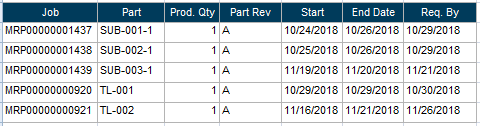 Yesterday I created two orders, one for TL-001 (need by 10/31) and one for TL-002 (need by 11/30).