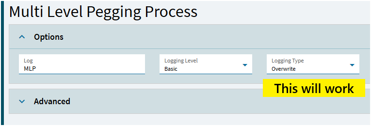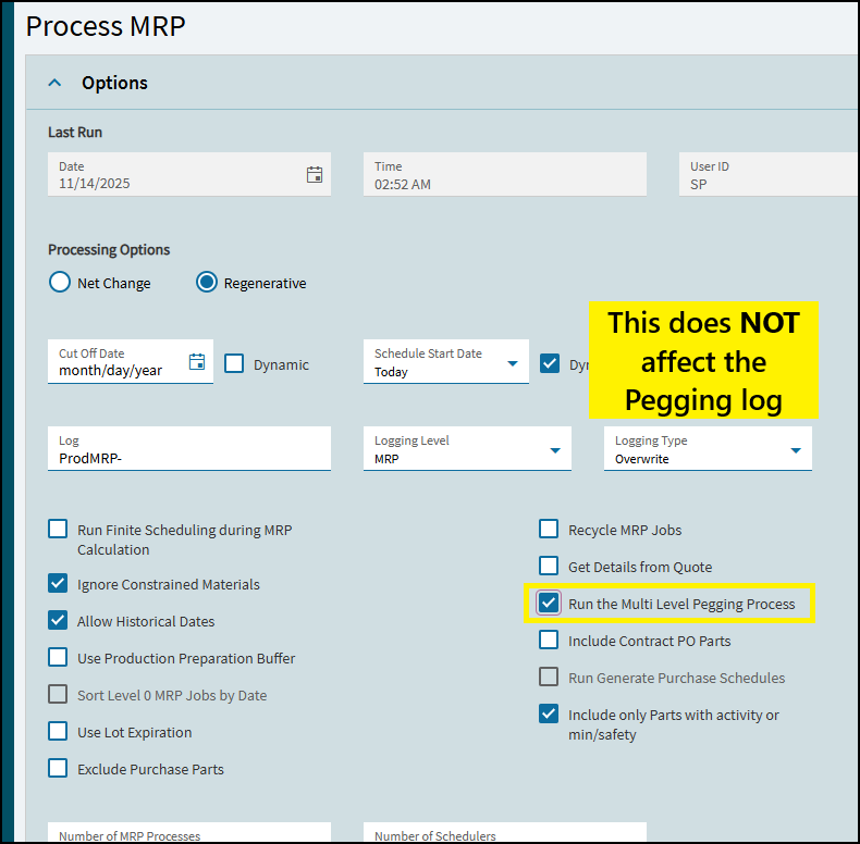 Multi-Level Pegging can be run separately from MRP, and in that screen there is a place to set the pegging log type.