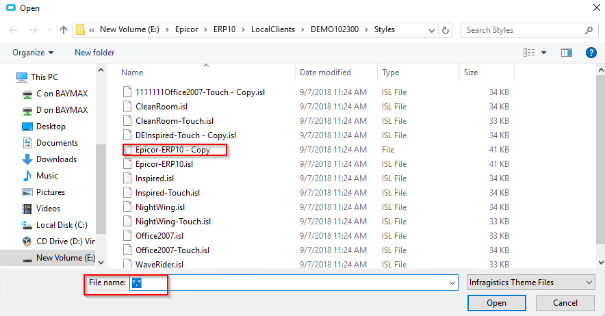 I modified a theme in Runtime Styler and did a Save As and saved it under a new name in the same folder. However, when I go to load that modified theme, the .isl file does not show in the Open list (see screensnip below). It’s been a while since I did this, so I am probably missing something simple. Any suggestions?