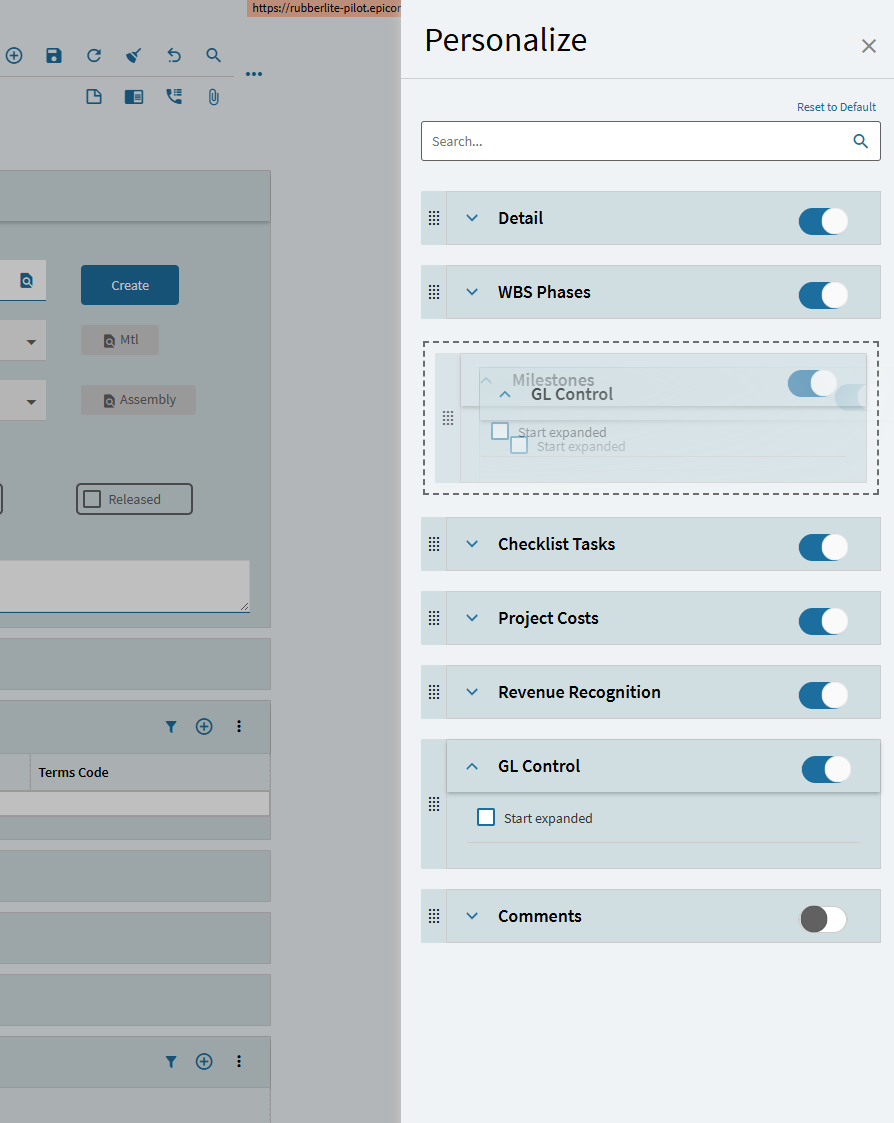 I’m working on a Kinetic customization in Project Entry > Details using Application Studio, and I’m having a hard time moving the GL Control panel card.