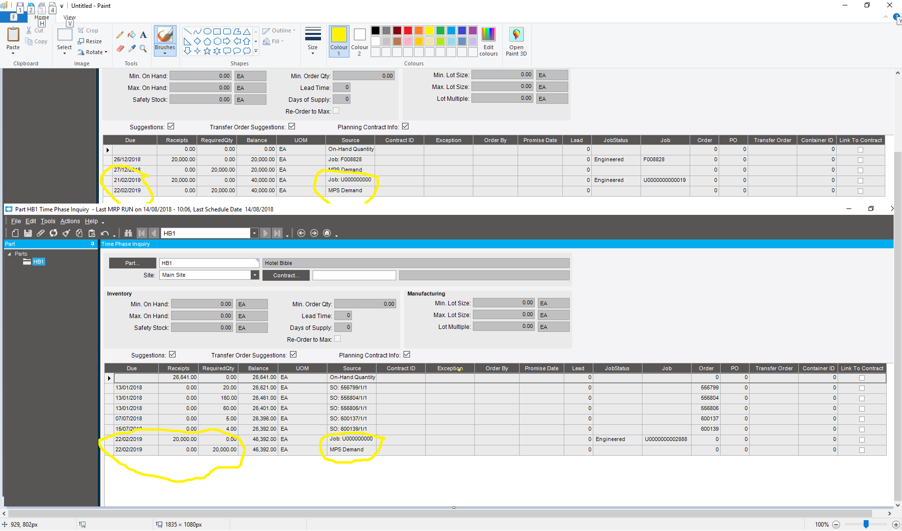 in your Pilot database, could modify the demand to call the same amount on the same date, also replicate the same supply i.e create the similar jobs using same routing and required on the same dates, then run filtered MRP, and check the Time Phase again…