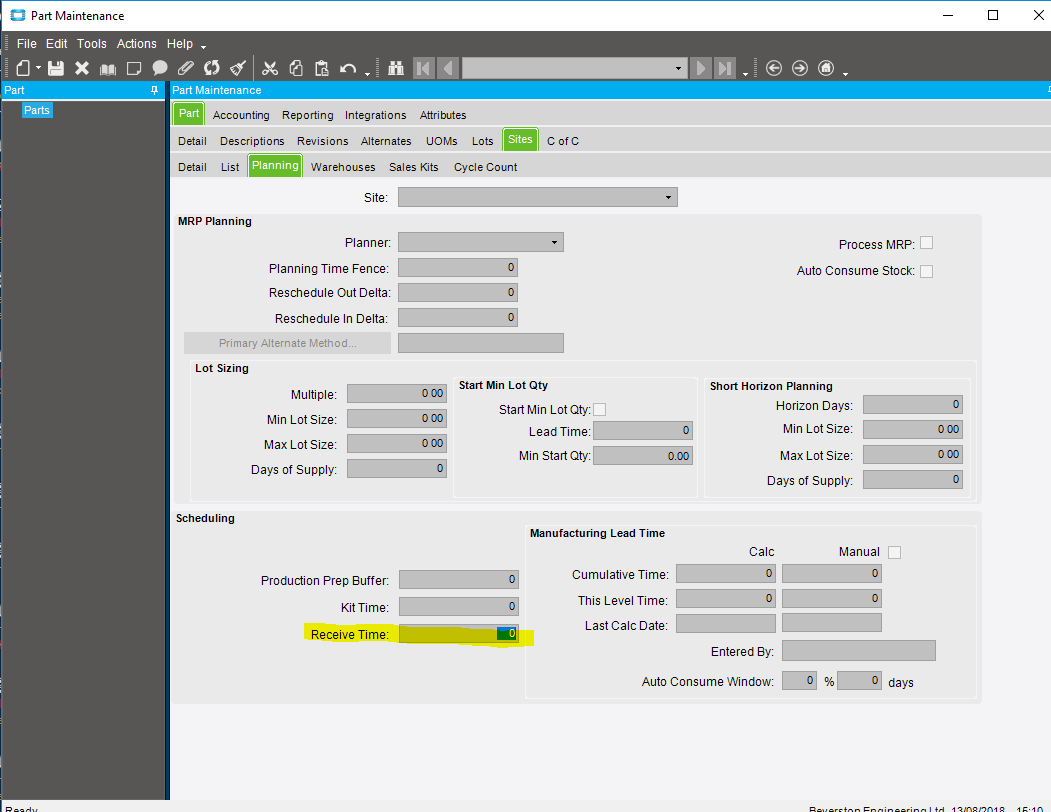 - Receive time at part level.