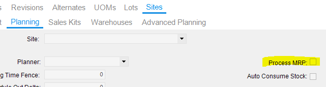 Do you want MRP to make some jobs but not others? For example, MRP should not touch finished goods? Then mark those parts as “Process MRP = false” in the PartPlant (sites tab of Part Entry). Also I would think you also want to mark it as “Generate PO Suggestions = false.”
