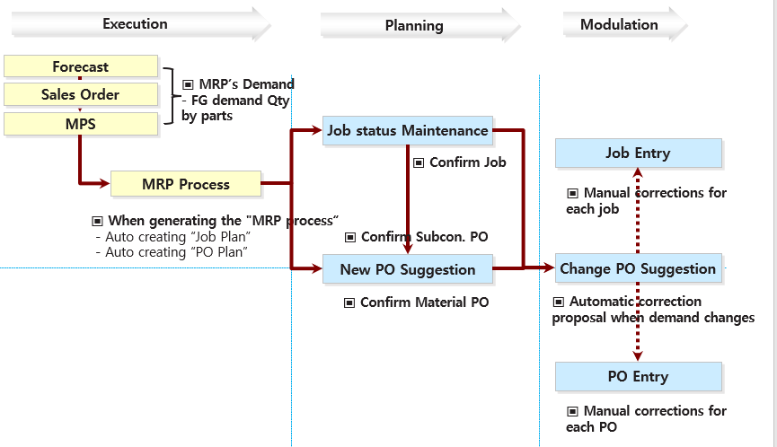 My company is seriously considering whether to run an MRP. If the MRP process can be operated as it is, of course, it will bring good results to the company(Inventory reduction, delivery time, etc.) Unfortunately, each company has its own business process, so there will be some parts where it is difficult to operate the MRP process as it is.