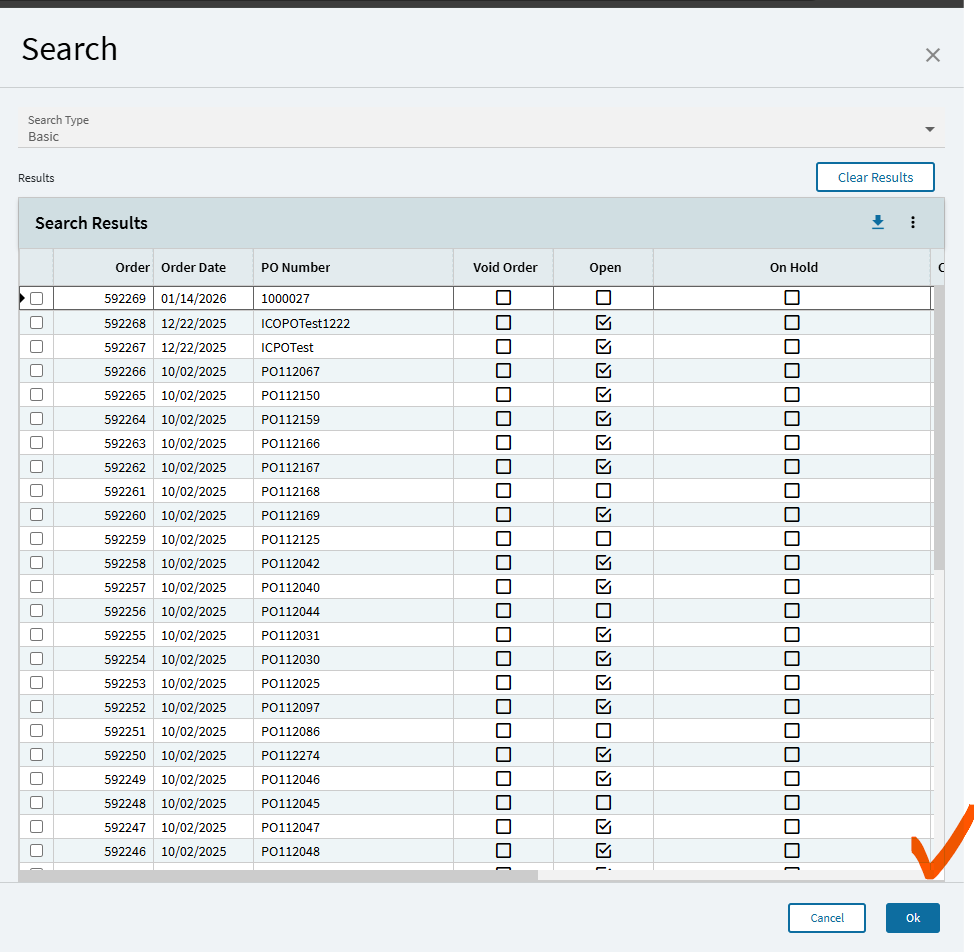 But, issue is when you use one search, for example, Part, and then when attempting to use any other search, for example Order, you just cannot select the row, i.e. pressing OK button does not do anything. Makes no difference which one you start with, issue always on the second search. Each search individually works just perfect.