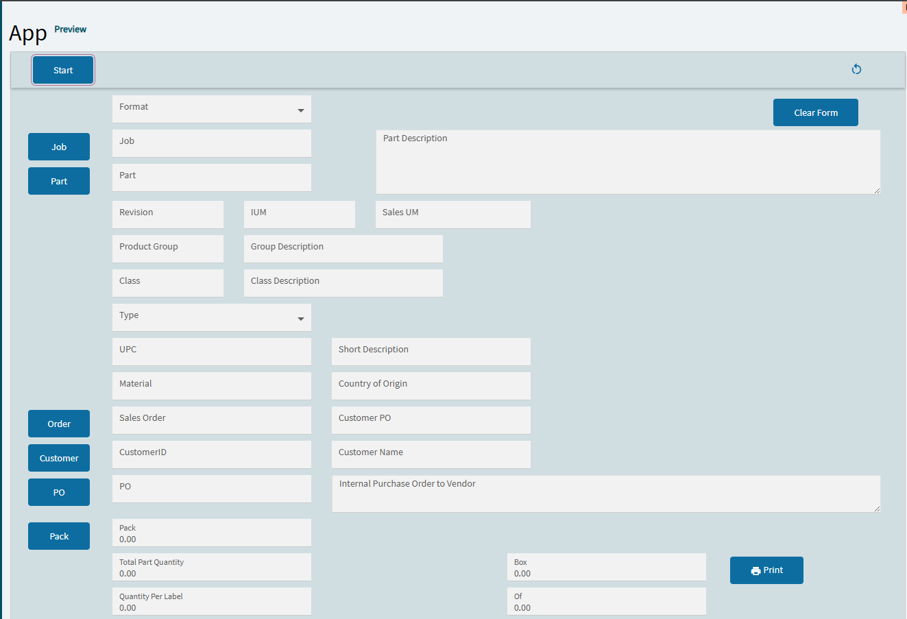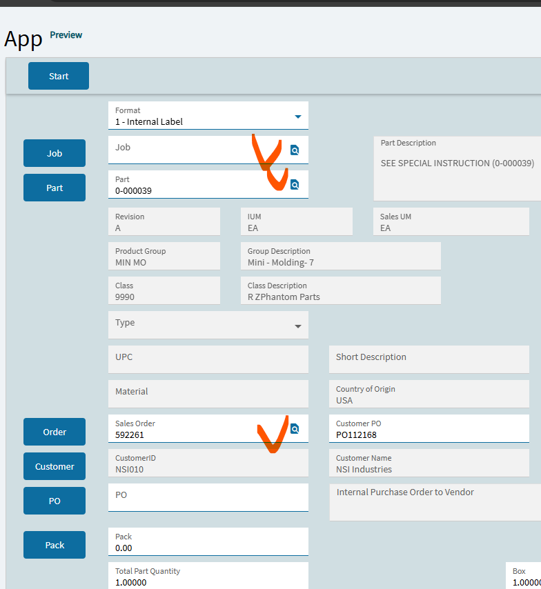 I have a screen with different buttons calling relevant searches, like part, order, po, etc.